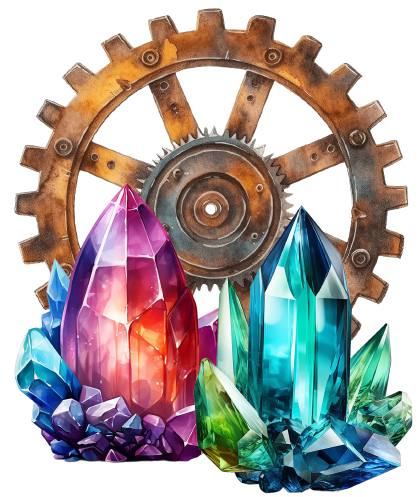 À l’origine Sérine devait être toute seule, la fée mécano devait vivre seule dans la maison théière. Après le covid, Frédéric Floréal avait dû fermer son salon de massage bien-être, ne pouvant plus exercer son métier. C’est en rangeant son salon bien-être après avoir pris des cristaux pour les amener chez lui qu’une idée lui est venue. Il avait créé une fiche sur une fée de style baba cool et un peu écolo, mais je ne l’avais toujours pas introduit dans le roman. C’est à ce moment en regardant les cristaux qu’il a eu l’idée de faire de Haune la sœur géologue de Sérine. Reprenant la fiche de Haune, après quelques modifications, Sérine avait une sœur. Hormis la collection de cristaux qu’Haune fait, ils lui servent à alimenter les machines de Sérine, mais elle s’en sert aussi dans sa création de meubles.